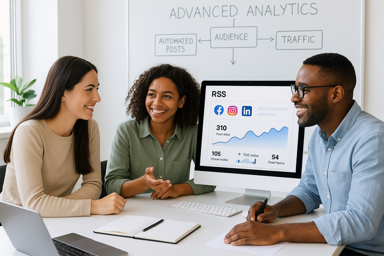 Maximize efficiency and stay current: Automatically distribute the newest articles, podcast episodes, or video content from any RSS source to Facebook, Instagram, X, TikTok, and more.